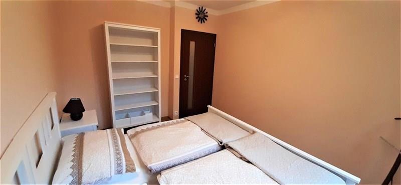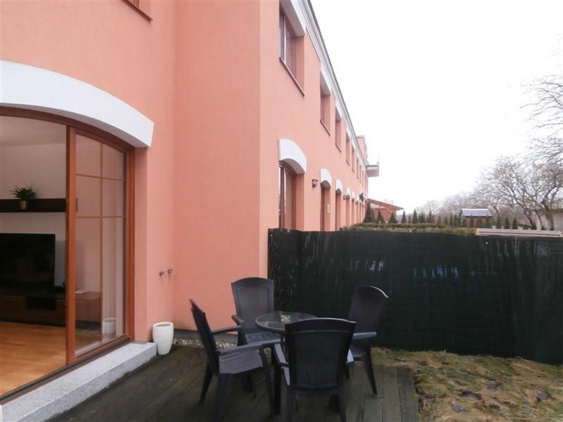 Zcela nový nebydlený řadový dům v novém kondominiu na pražském Šeberově. Dům je plně zařízen, se zahrádkou a dvěma parkovacími místy. V domě jsou dvě koupelny a dvě komory. V přízemním podlaží je předsíň, pokoj zařízený jako kancelář, dvě komory, koupelna, obývák s kuchyní se vstupem na terasu a zahradu. V prvním patře jsou dvě ložnice, koupelna a prádelna s pračkou a sušičkou. V případě potřeby může majitel některé zařízení odebrat. Cena je 37000,-Kč plus 2000,-Kč voda a dům plus vlastní spotřeba plynu a elektřiny, vratná kauce 1 nájem, odměna pro realitní kancelář 50% nájmu. Volný ihned.